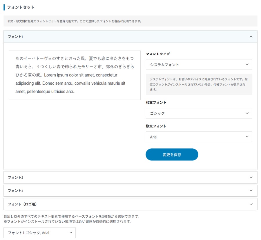 基本フォントとは別に、大見出しで別のフォントを選択することも出来ます。
